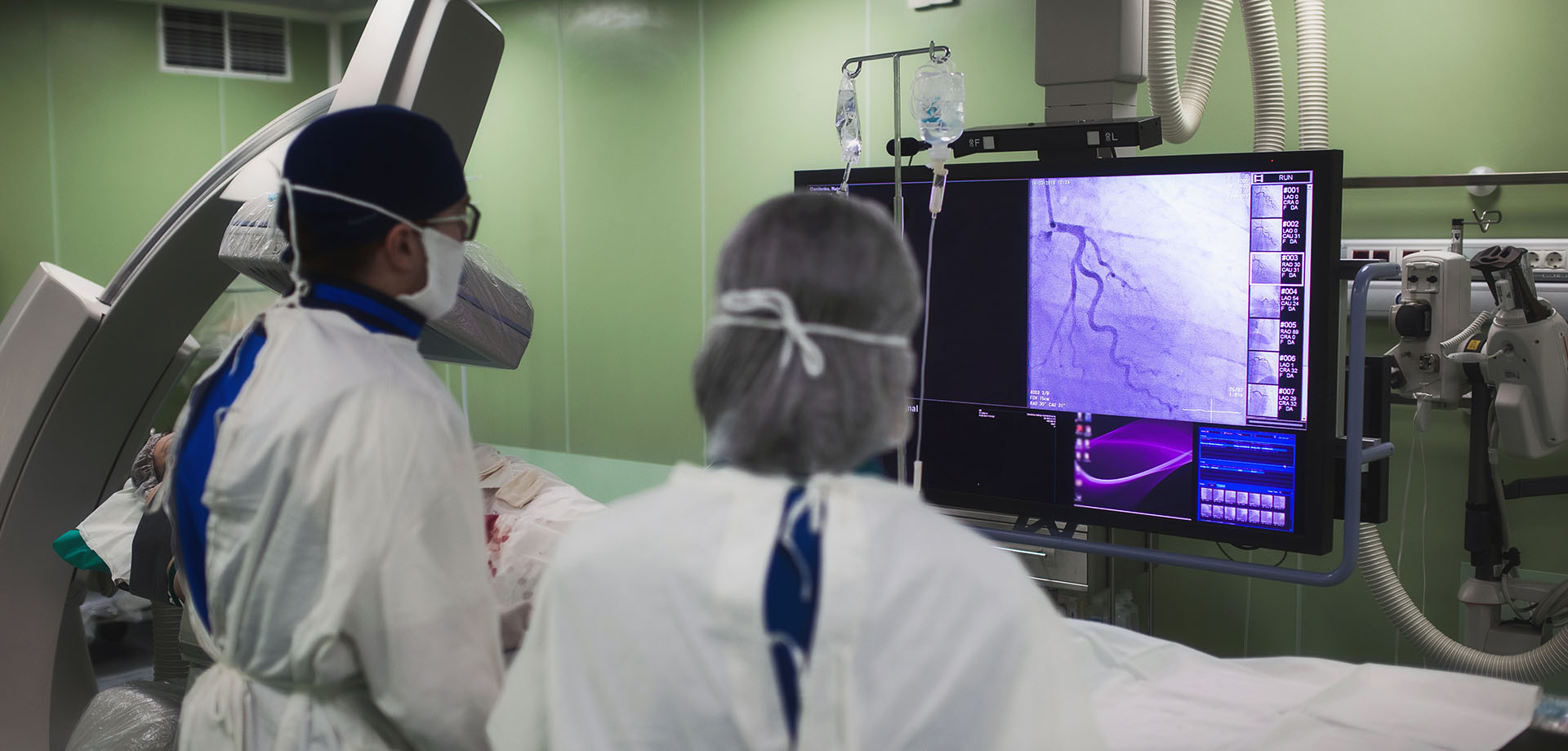 For complex and emergency cardiac conditions, IMH operates a fully equipped cardiac catheterization laboratory with 24/7 interventional cardiology coverage. Services include coronary angiography, angioplasty with stenting, IVUS-guided procedures, intravascular lithotripsy (IVL), rotablation, pacemaker and ICD implantation, CRT therapy, and vascular interventions.